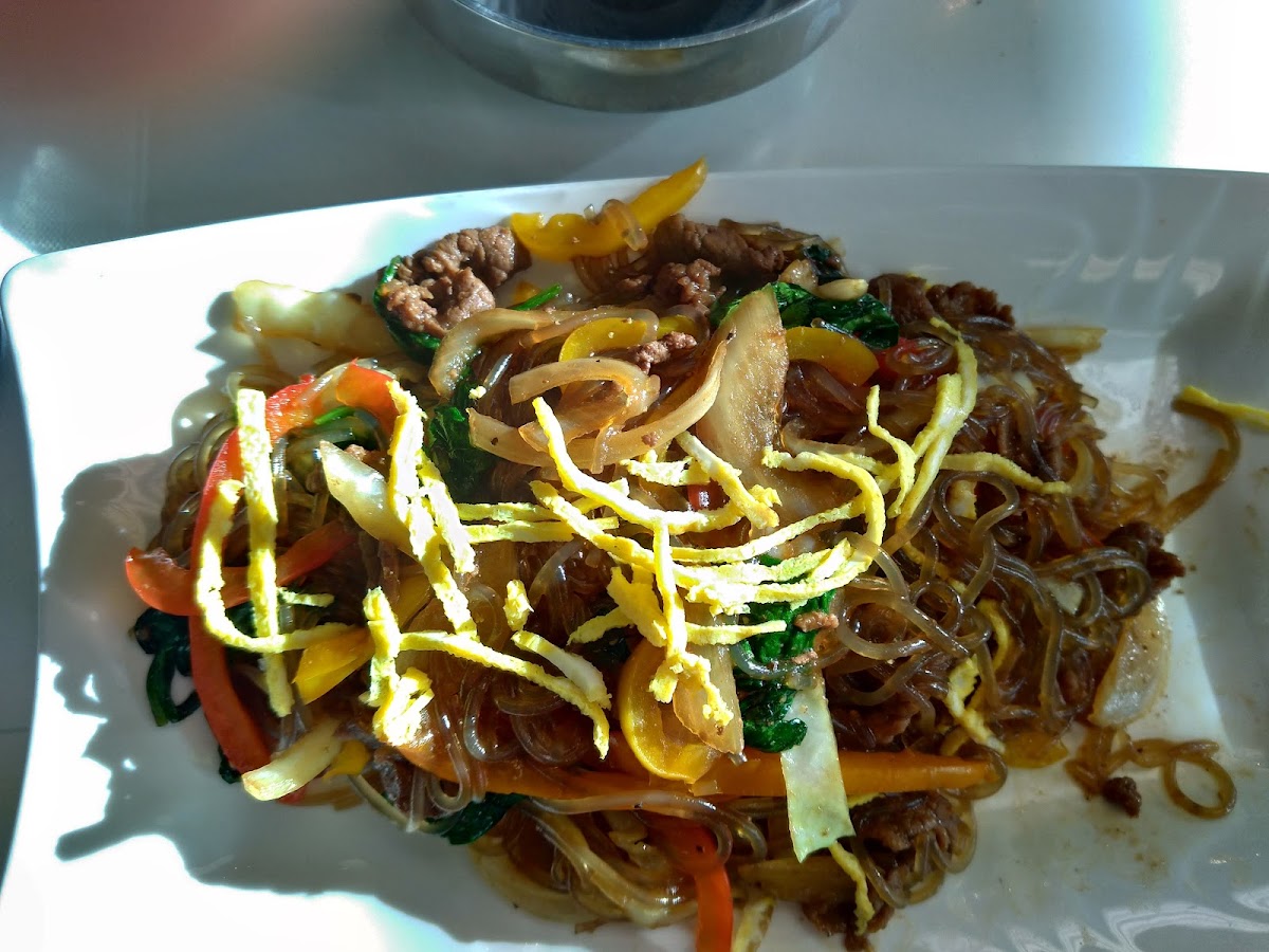 Another favorite on the menu is the Fish Cake Skewer (2pcs), a delightful snack that's crispy on the outside and juicy on the inside. Whether you're stopping in for a quick snack or a full meal, these skewers are sure to hit the spot. If you're in the mood for something savory and satisfying, the Japche - stir-fried glass noodles with vegetables - is a flavorful option that offers the perfect balance of textures and taste.