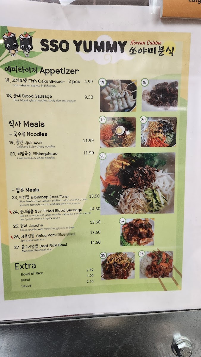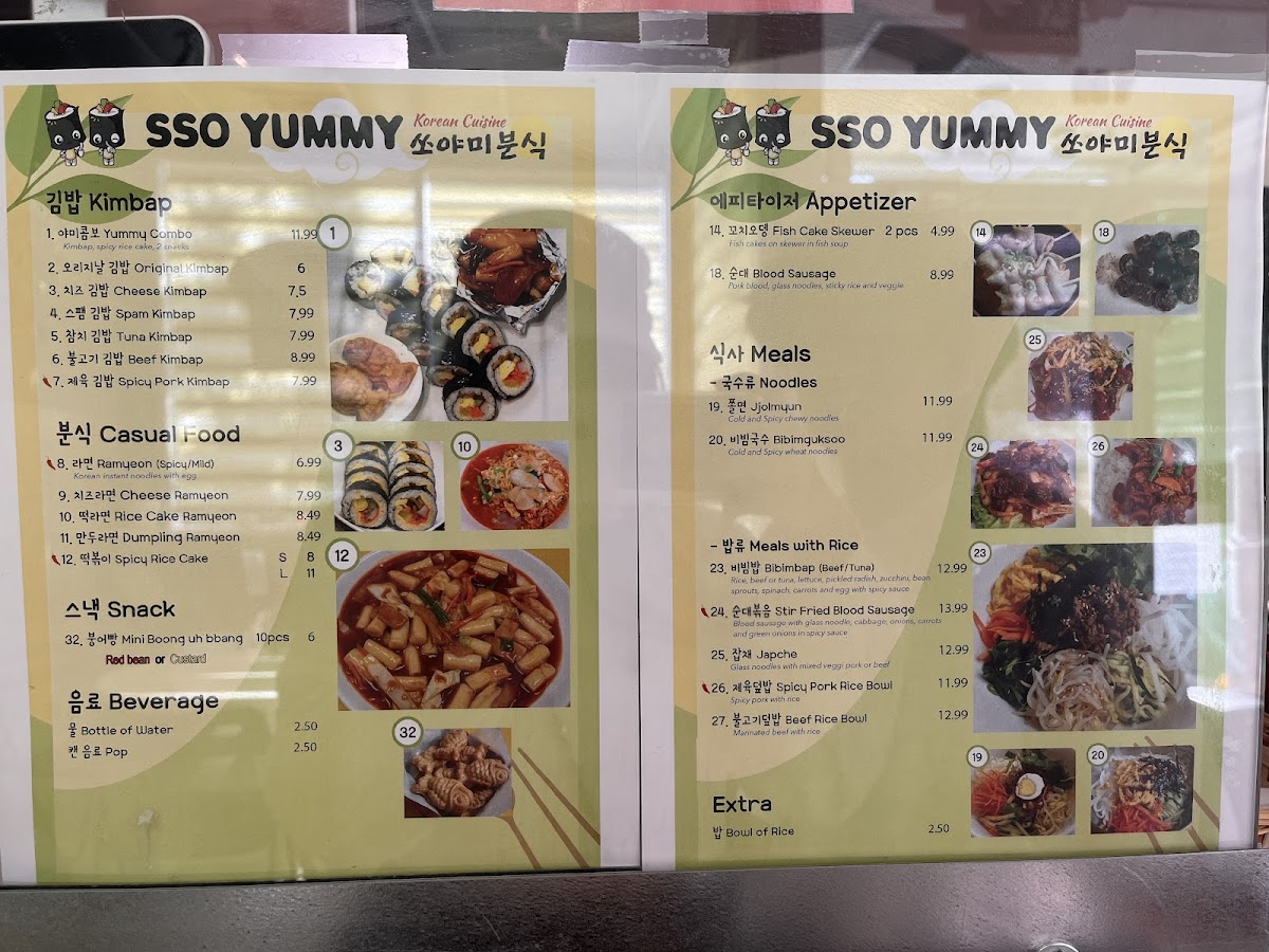 Overall, Sso Yummy presents a carefully crafted menu that caters to a wide variety of tastes, whether you're in the mood for a hearty meal, quick snack, or a savory appetizer. The balance of bold and comforting flavors, combined with reasonable prices, makes this spot a must-visit for anyone looking to experience authentic Korean cuisine in Calgary.