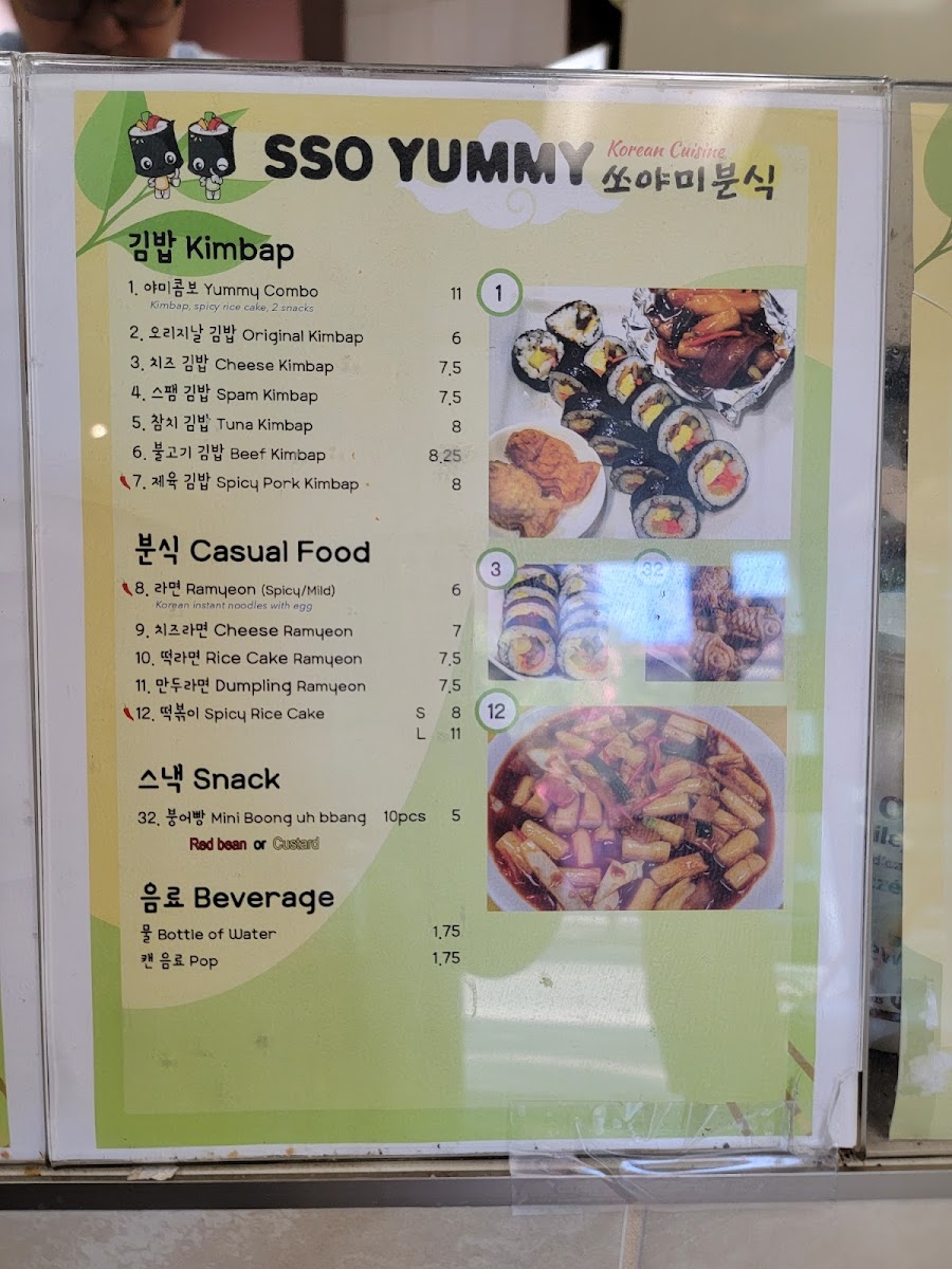 The Kimbap section is another highlight, with tasty rolls like the Beef Kimbap, Spam Yummy Combo, and Cheese Kimbap, each offering a unique twist on the classic dish. The Yummy Combo and Beef Yummy Combo are also available for those who want a combination of different fillings and flavors.